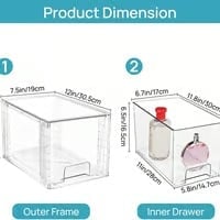 High Quality Acrylic Organizer--These storage bins are made by PET material, which is 12"L x7.5"W x 7"H, and the using size is 11"L x 5.8"W x 6.5"H. It can bear 15lbs when stacke