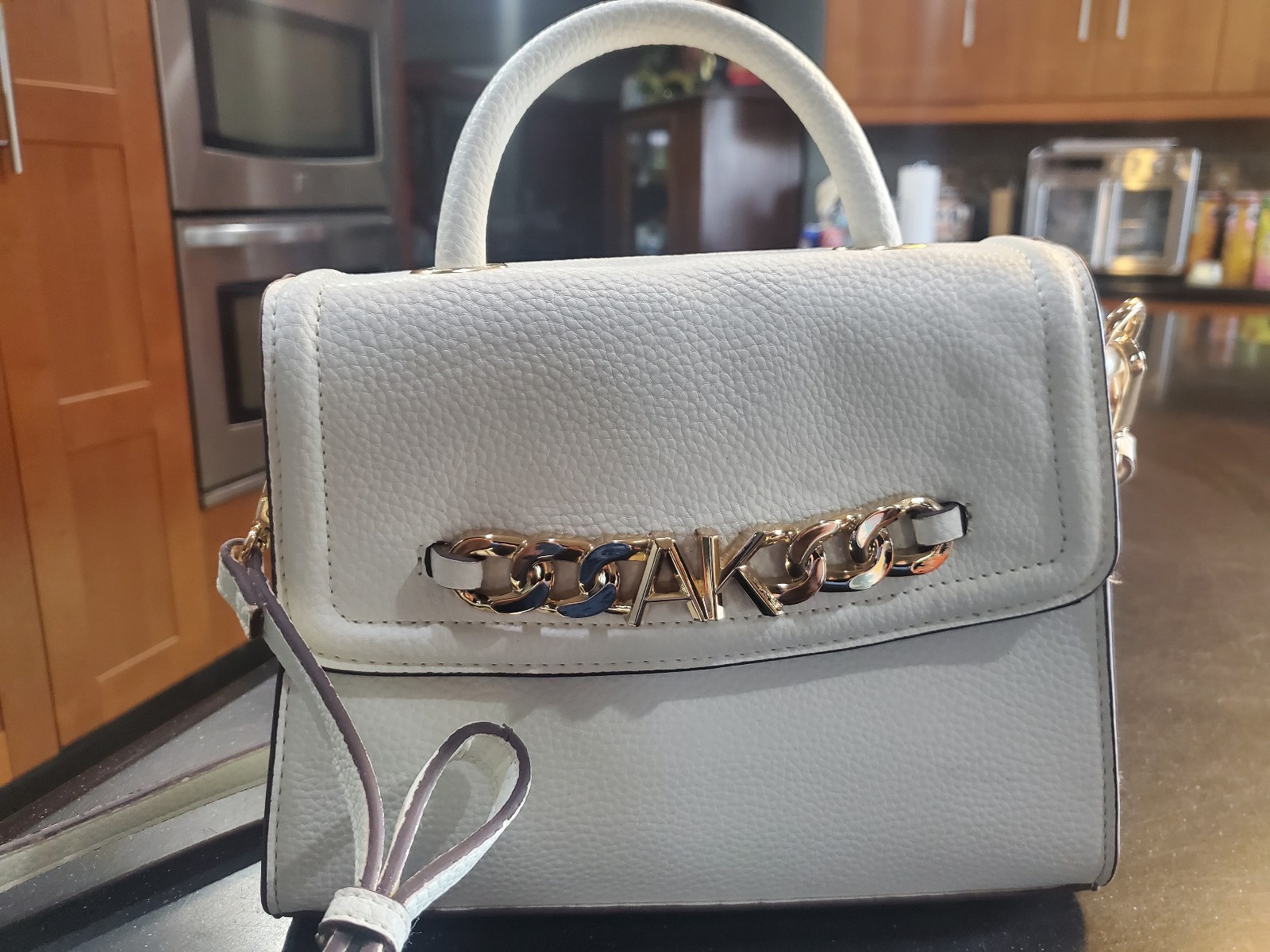 Want a neutral color bag which is spacious enough to hold your essentials and stylish enough to complement any outfit? Then, here's the Anne Klein® Top-Handle Satchel w/ Chunky AK Chain for you! This convertible satchel bag is constructed from PU and detailed with one zippered interior pocket, four card slots, and one exterior slip pocket.