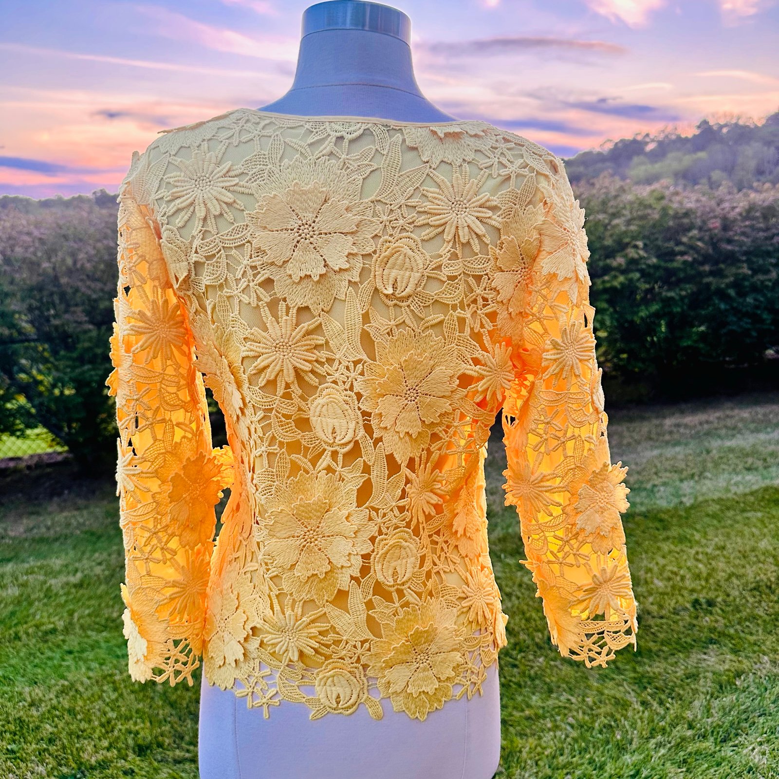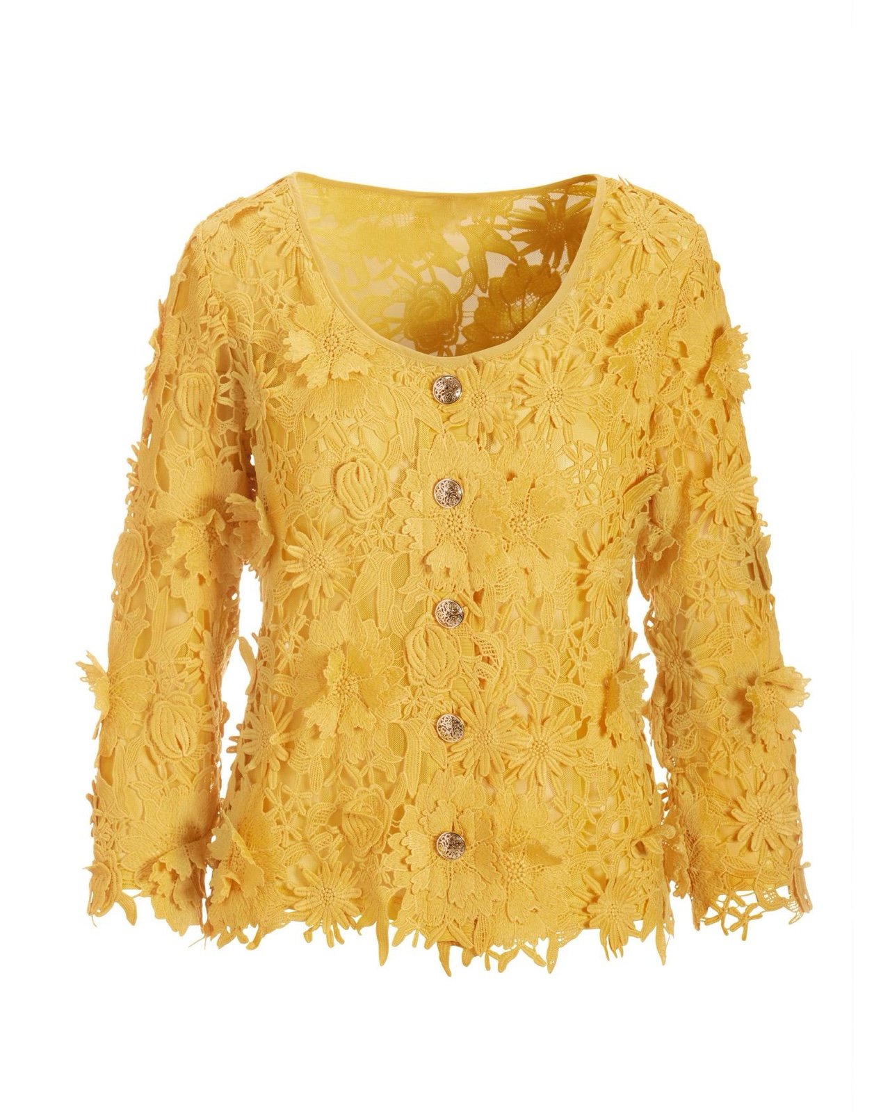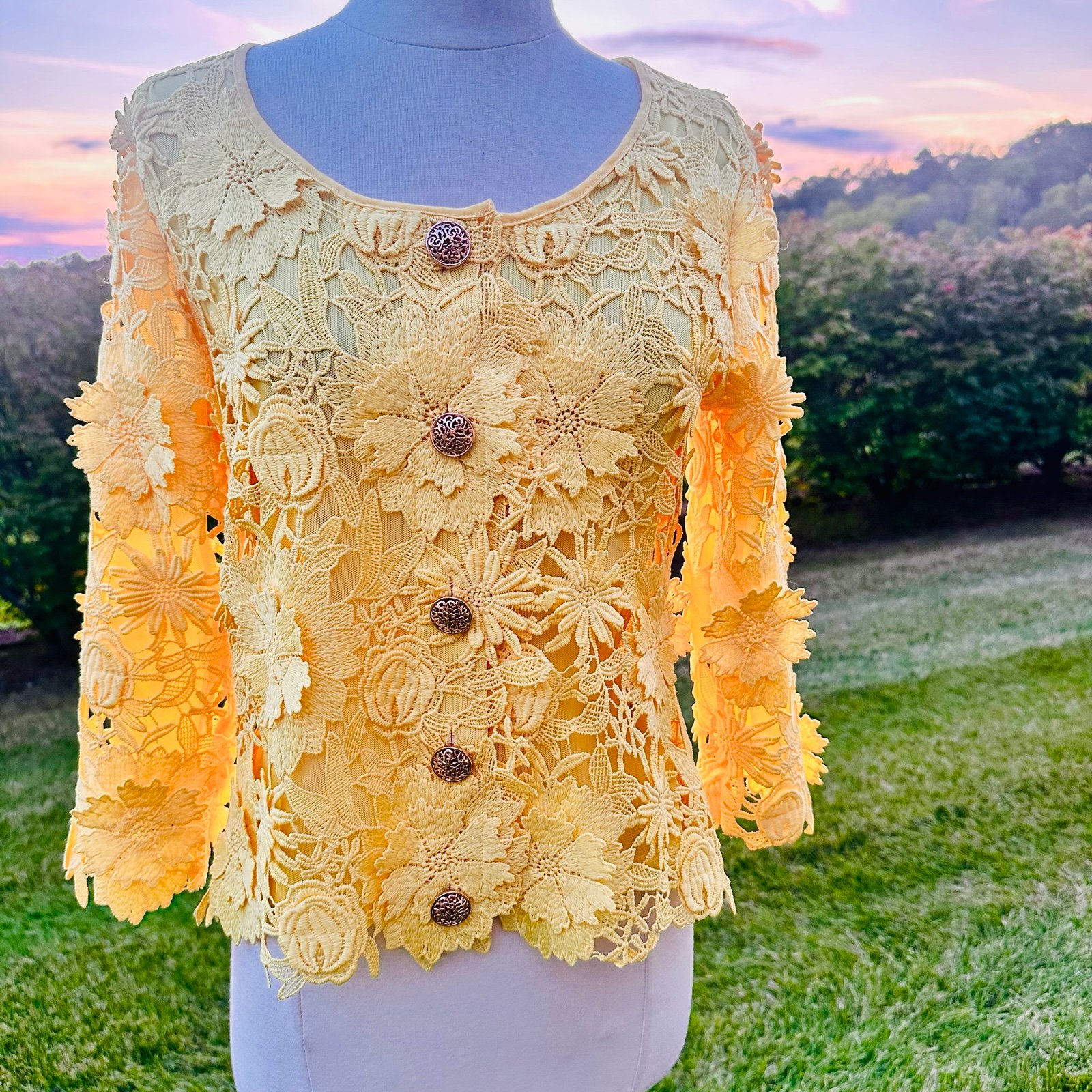 Floral on floral creates a romantic look with unique textural structure and ultra-feminine style. Cue the compliments as this jacket adds a fresh lacey layer to casual and dressy outfits - from your favorite jeans to a special occasion dress.