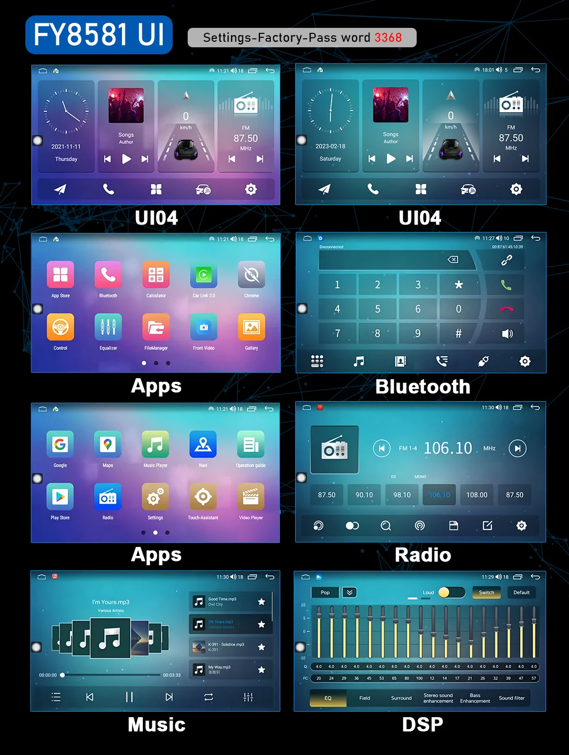 Bluetooth 5.0 with faster transfer speed, wider coverage and enhanced anti-interference,the Bluetooth 5.0 wireless technology allow you to stream Spotify and Pandora from yourphone to enjoy millions of songs you like with a high fidelity quality.And make hands-free calling without noise while driving.(Please refer to the product you have purchased)