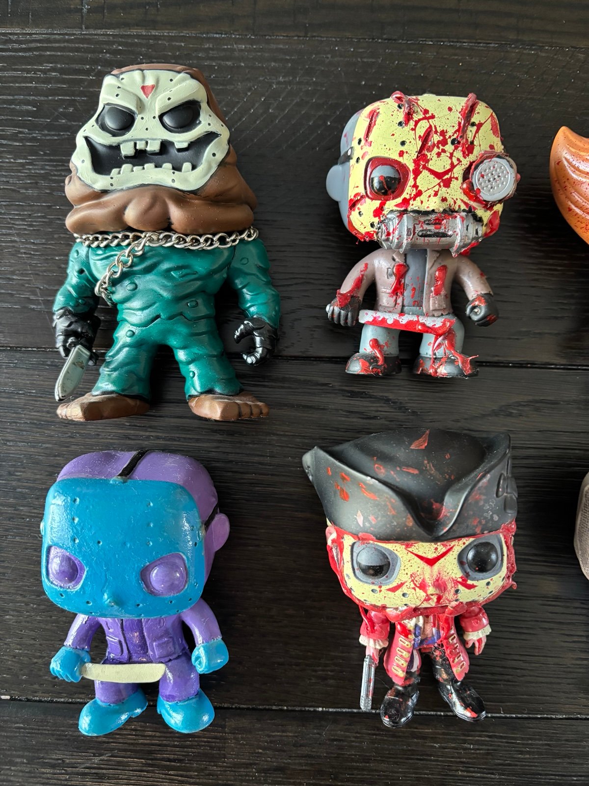 Friday the 13th Jason Voorhees Custom Funko pop collection. 5 custom Jason Voorhees Funko pops as well as 3 original Jason Funko pops. All loose and no boxes included.