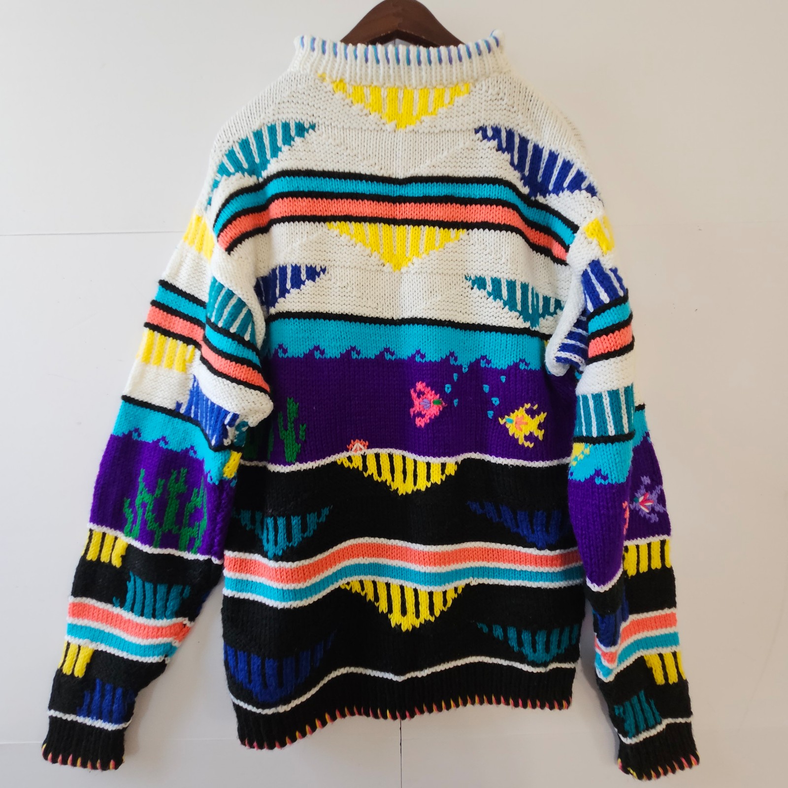 Handmade Knit Multi-Colored Unisex Sweater with an Intricate Ocean Life Design Pattern Motif. Incredibly Detailed!