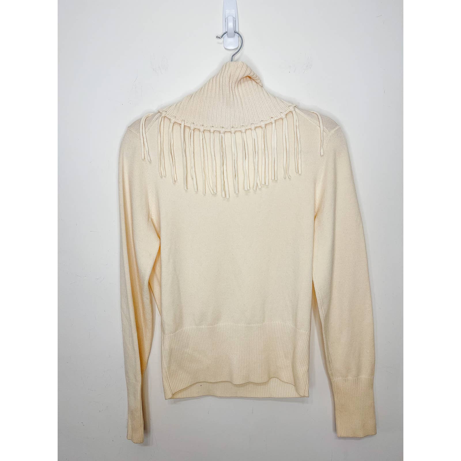 Karen Millen Cream Fringe Turtleneck Wool-blend Sweater Size Medium