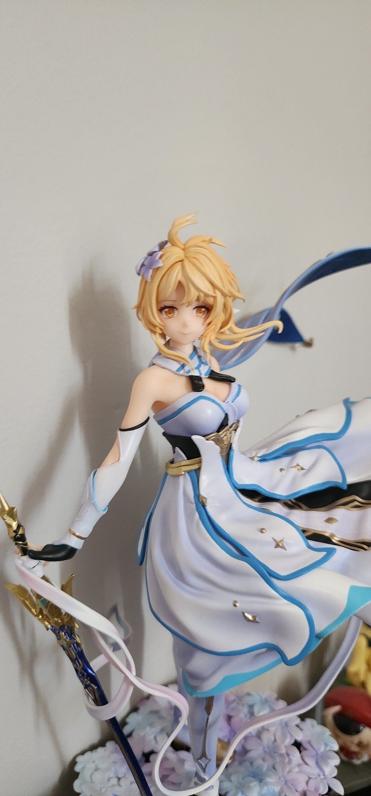 The KOD Studio Genshin Impact Lumine Model is a 1/6 scale figurine standing at a height of 32 cm. This collectible piece features the character Lumine from the popular video game Genshin Impact, brought to life in stunning detail by KOD Studio. Fans of the game will appreciate the craftsmanship and accuracy in capturing Lumine's likeness in this high-quality figurine. Perfect for display or as a cherished addition to any Genshin Impact collection.