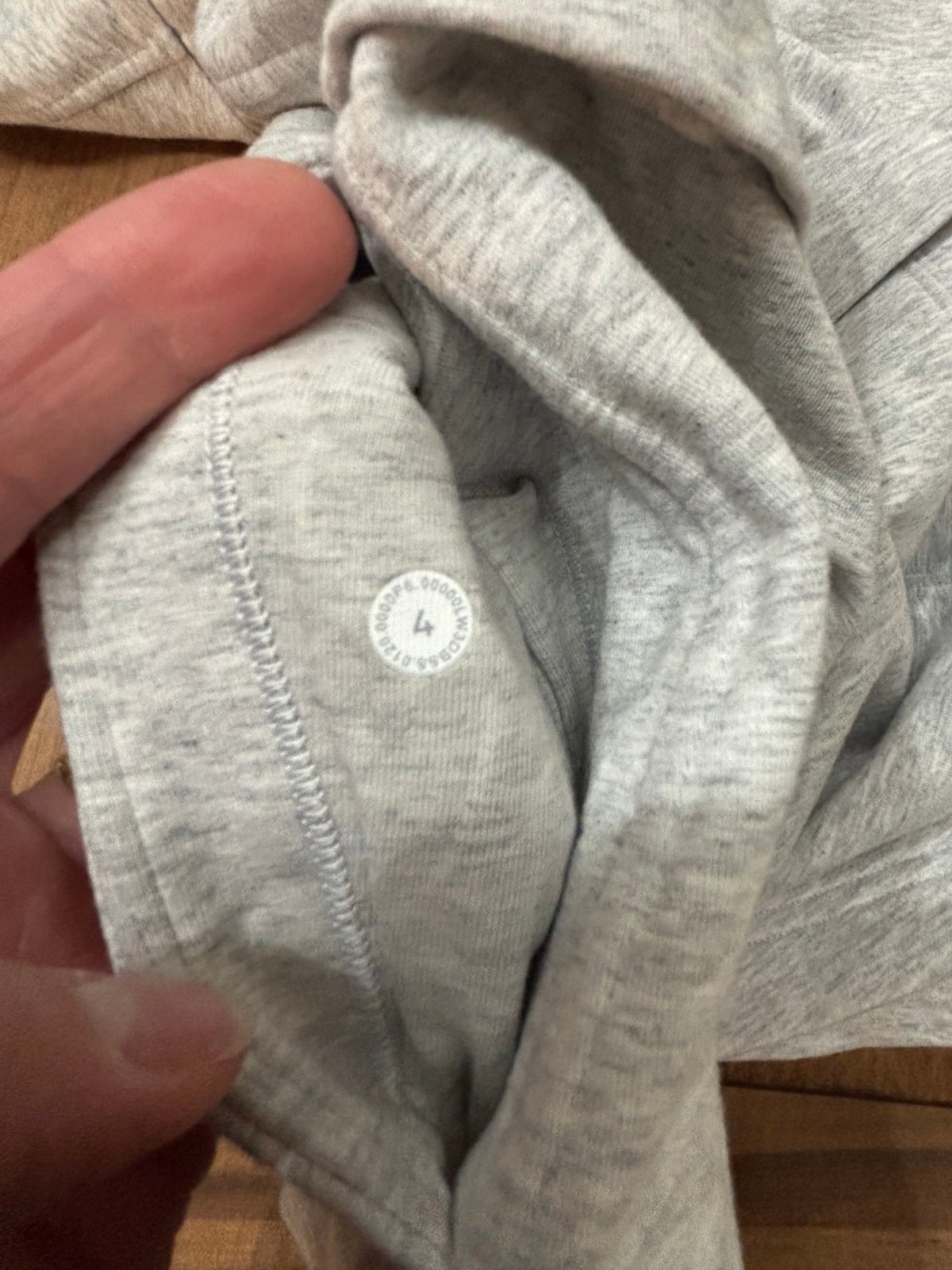 The Lululemon Find Your Unwind Pullover in Light Gray, size 4, is a stylish and comfortable sweatshirt perfect for activewear. Made from modal material, this pullover features a heathered pattern with long sleeves and a mock neck neckline. It is designed with a regular fit and includes a hidden pocket for added convenience. The pullover is machine washable and can be worn in various occasions such as walking, school, or running, making it a versatile and practical choice for outdoor activities or everyday wear in the winter, fall, or spring seasons.