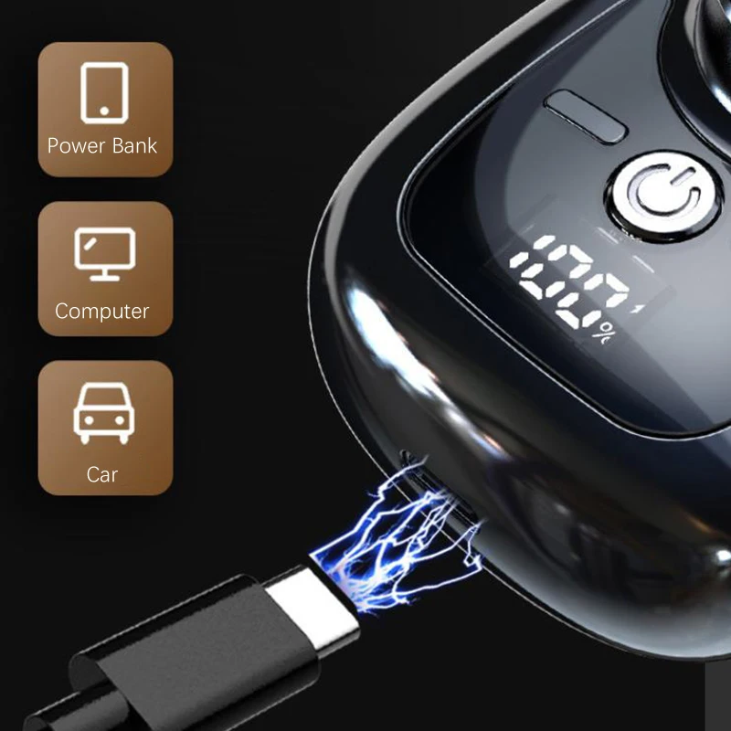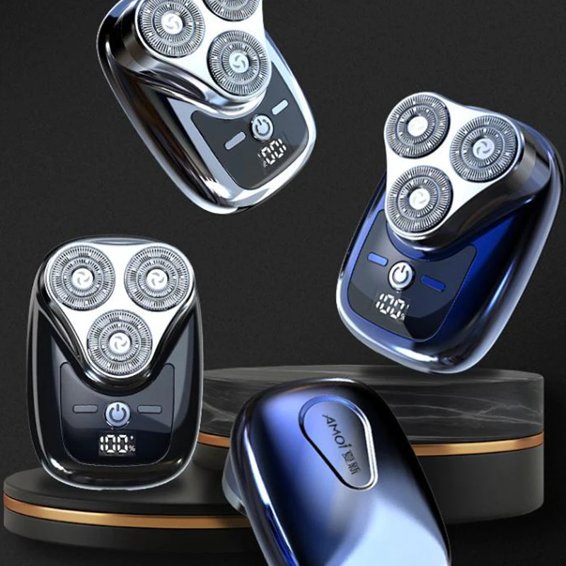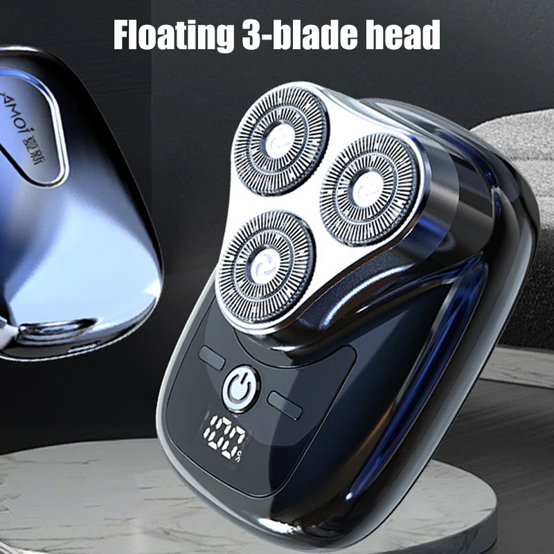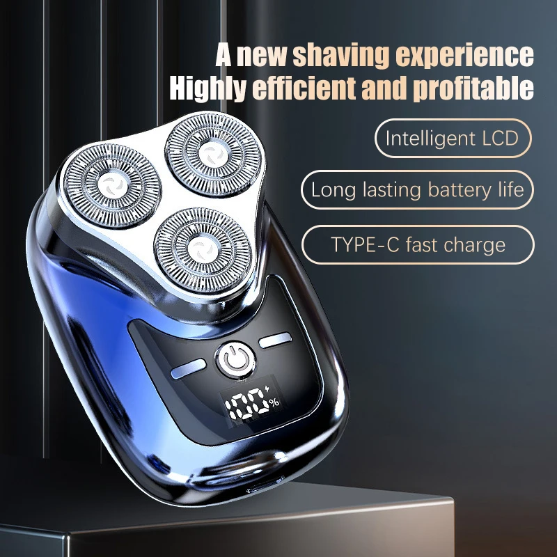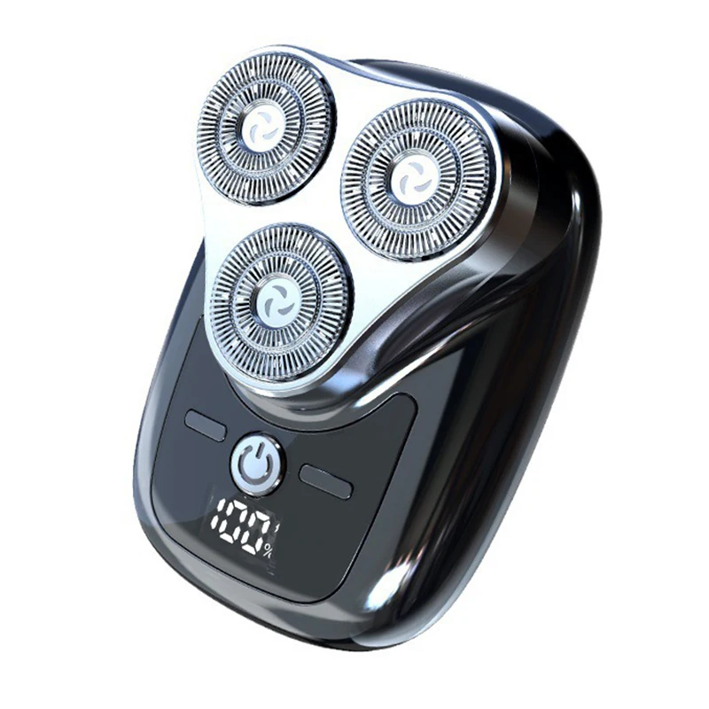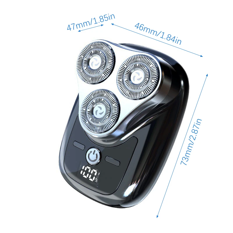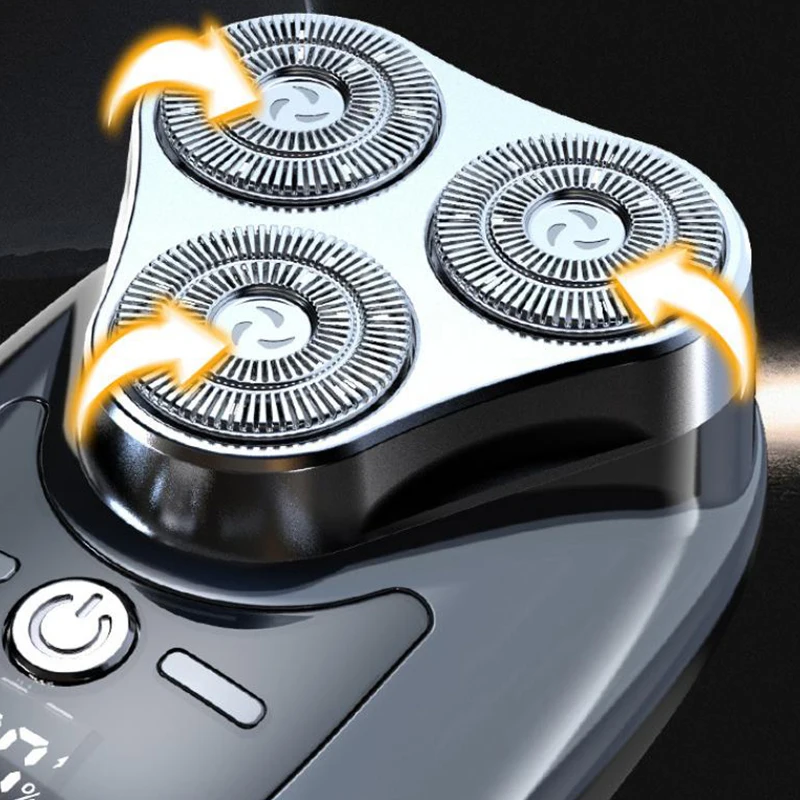Three-dimensional floating three blade, fits the face well, and has no dead corners to shave and clean the beard.Double ring stainless steel turbo rotary blades, especially for hard beards, 0.1 mm thin stainless steel foil, double ring 3D blade mesh for increased shaving volume, floating arc smooth to skin, effectively removes root hairs.