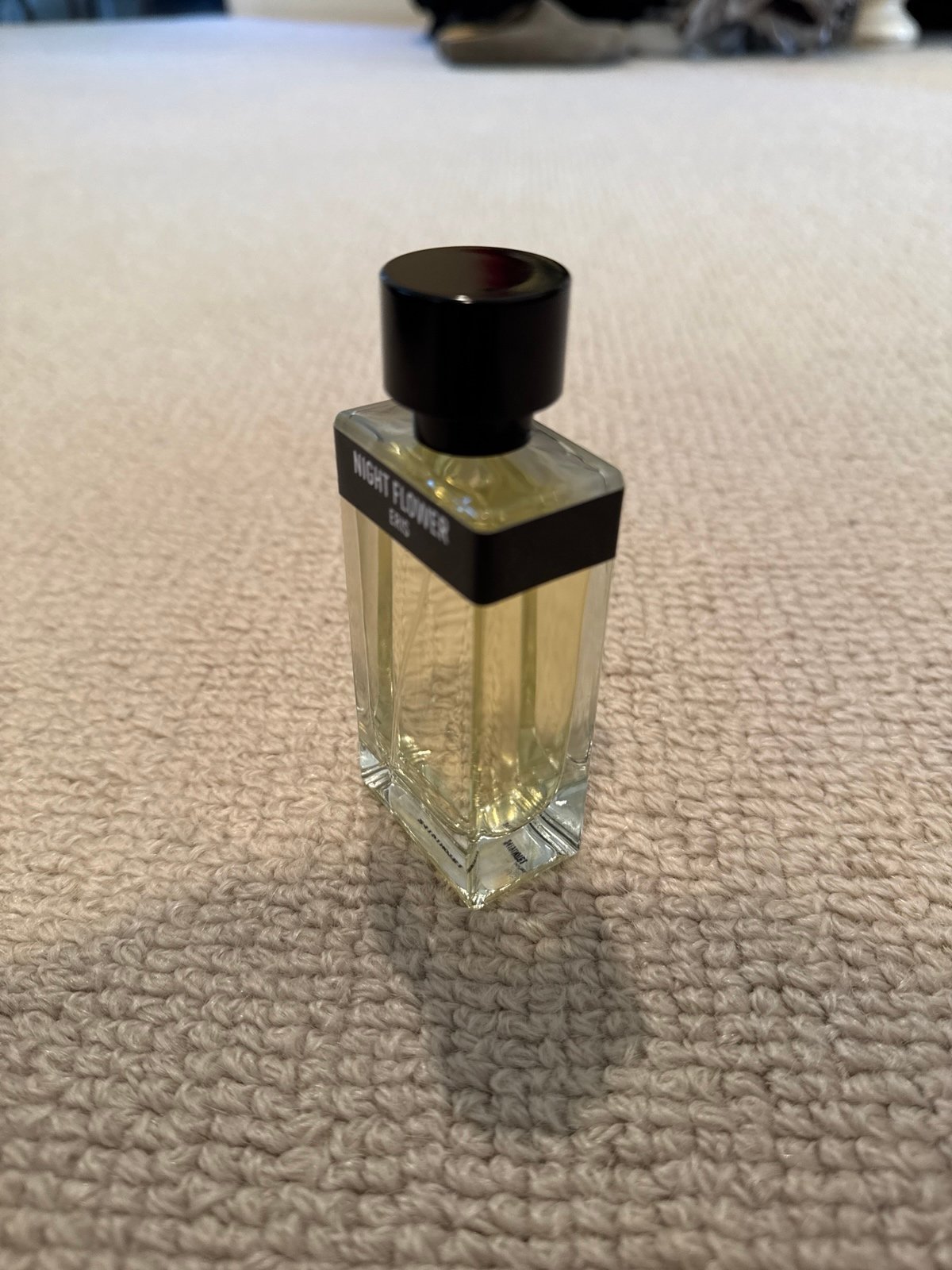 NIGHT FLOWER Eau de Parfum opens with a blast of fresh, aromatic cardamom. Animalic leather and suede wrap around a narcotic Indian tuberose, drying down to a cozy base of birch tar, patchouli, cinnamon and tonka.