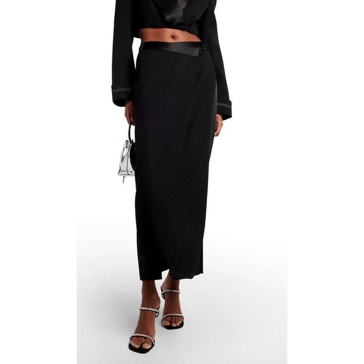 NWOT Jonathan Simkhai Clarissa overlapping wool-blend maxi skirt black size 4