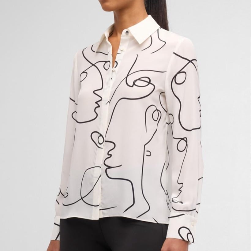 Alice + Olivia "Brady" crepe de chine silk blouse printed with an abstract design