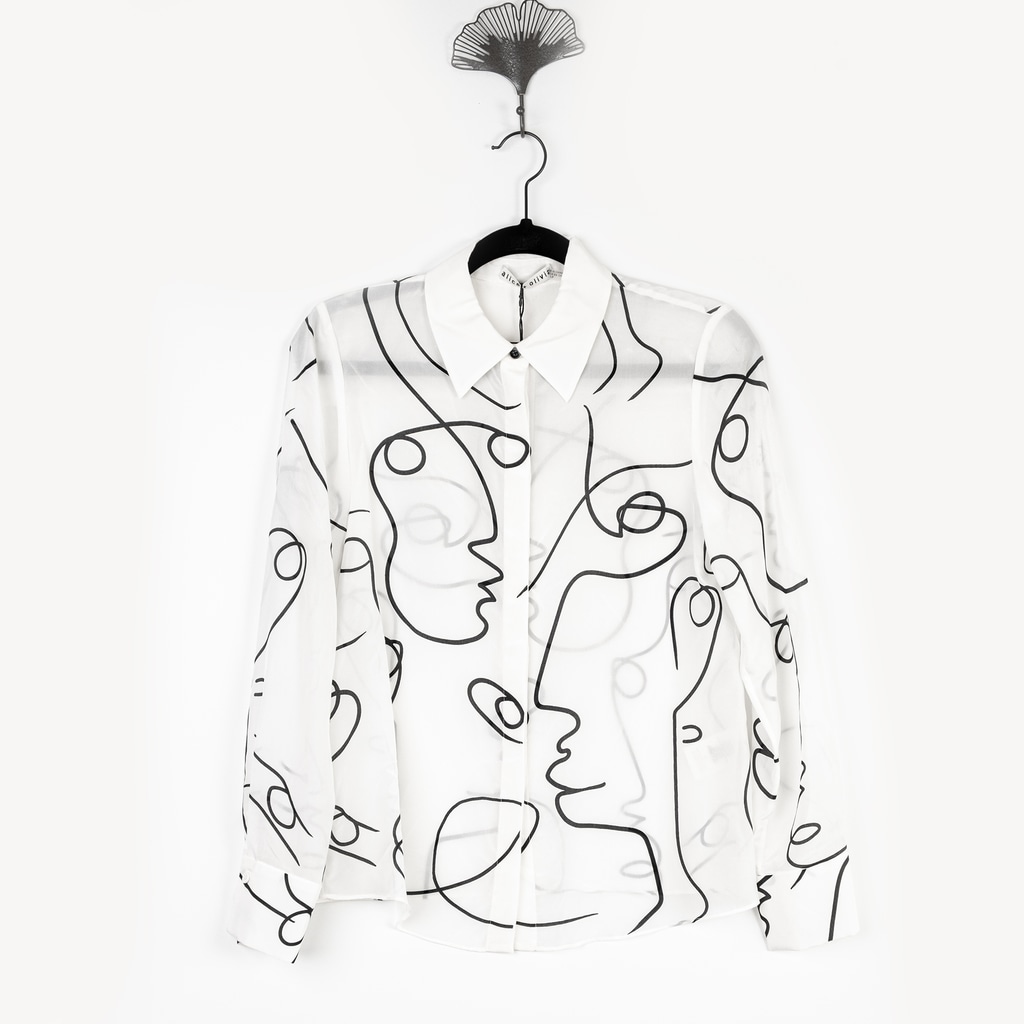Alice and Olivia a+O Koketit Brady Silk Button Down Blouse White $395
