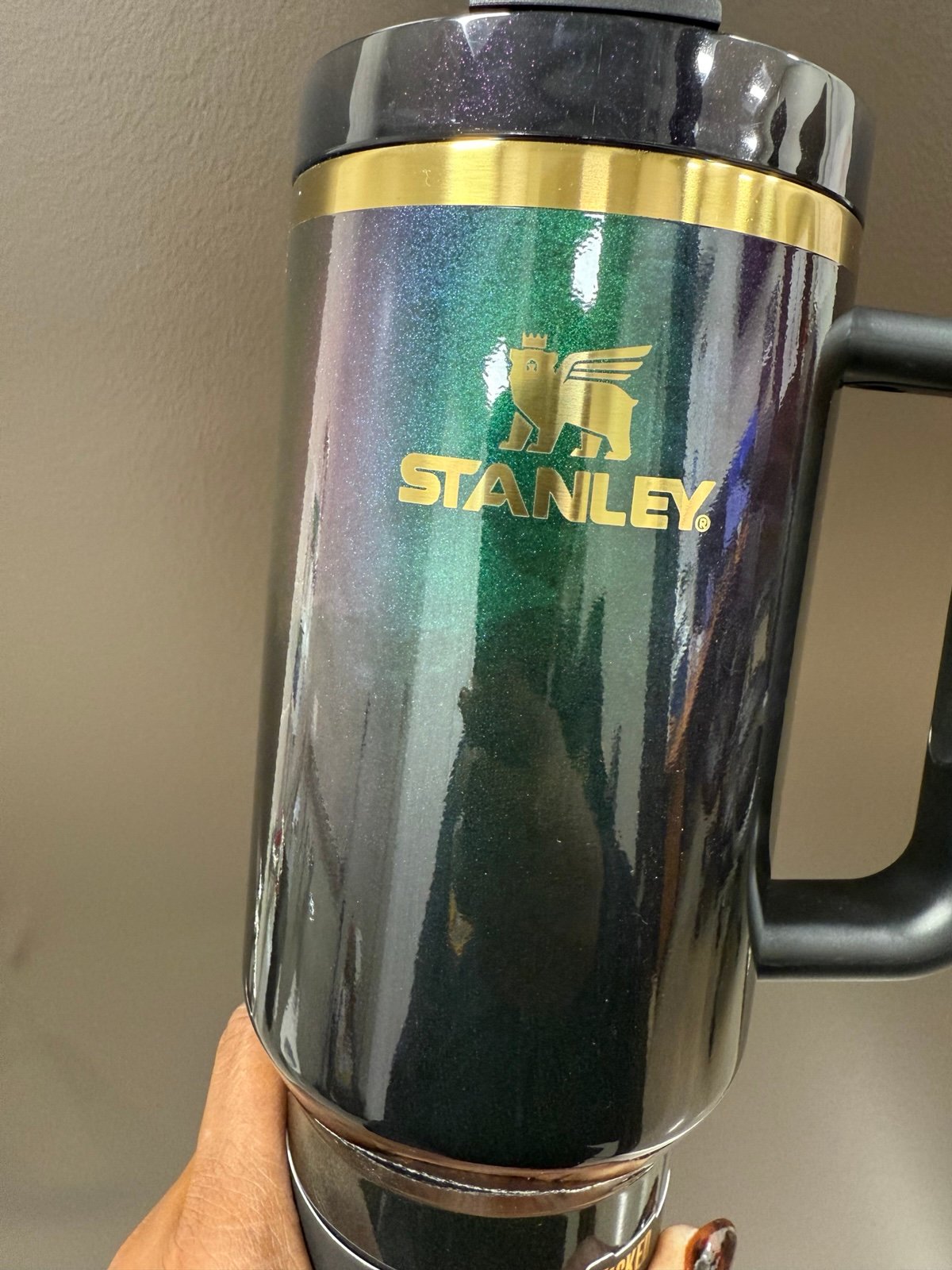 Beautiful cup for your Wicked Fan. This tumbler is a dark, iridescent green that changes to purple and a little blue in sunlight. This tumbler has a “smoky pattern” and can appear a little irregular in regular light (normal). I also found a MFG flaw in the pattern, seen in pics (looks like lighter green glitter)and some mild scuffs from shelf storage. These areas are small and do not take away from the cup. Do not buy if you are looking for perfection, as there are NO CANCELLATIONS, RETURNS OR REFUNDS.