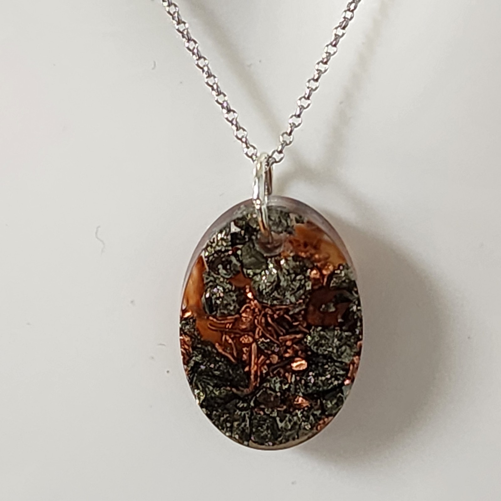 Orgonite Pendant with Pyrite and Carnelian – Copper and Resin, 925 Sterling Silver Chain, EMF Protection, Handmade High-End Energy Jewelry