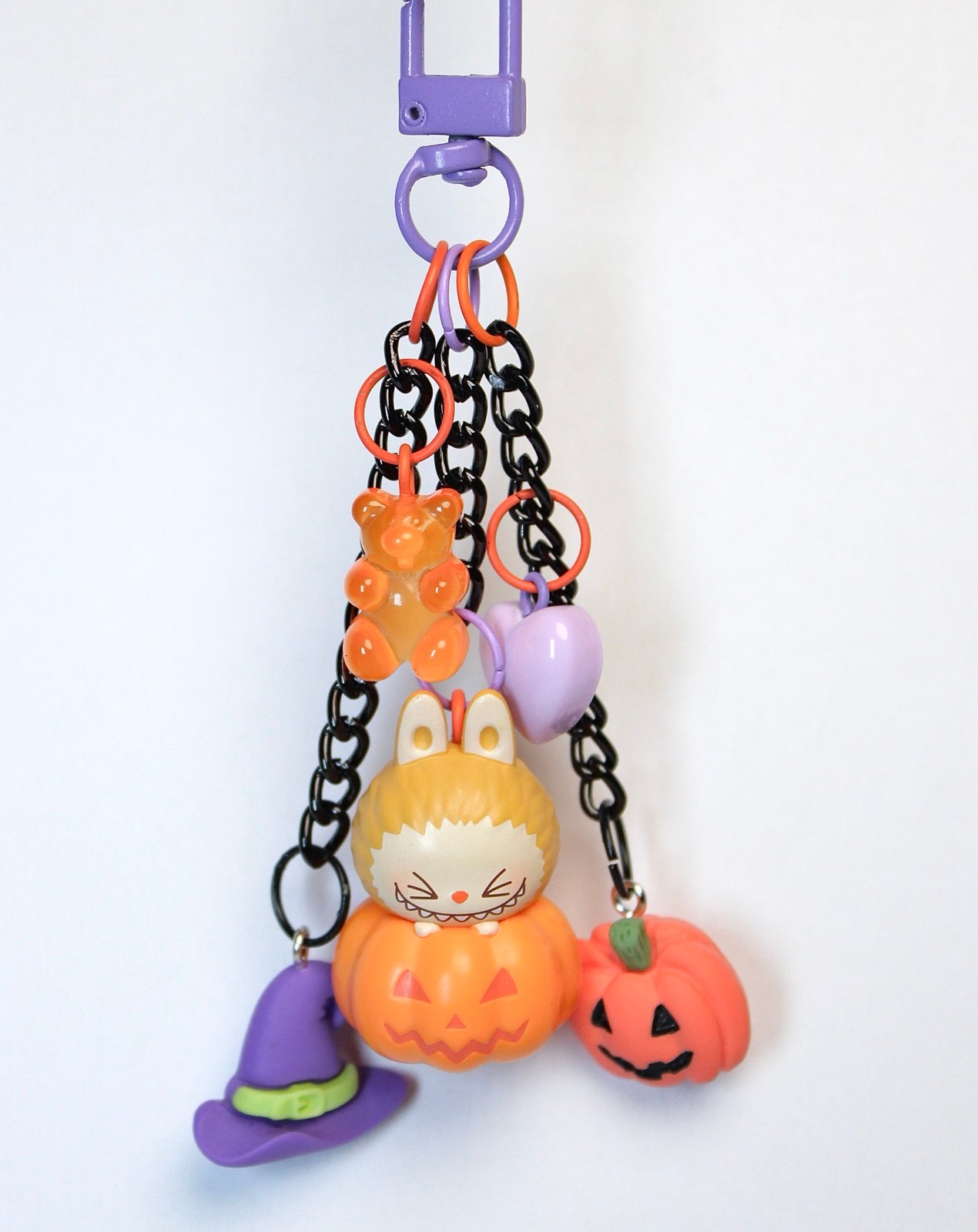 Authentic Popmart Pumpkin Labubu Pop Bean that was handmade into a bag charm/keychain. This was made with a pop bean, so they are smaller than the actual figure Bag charms/keychains.