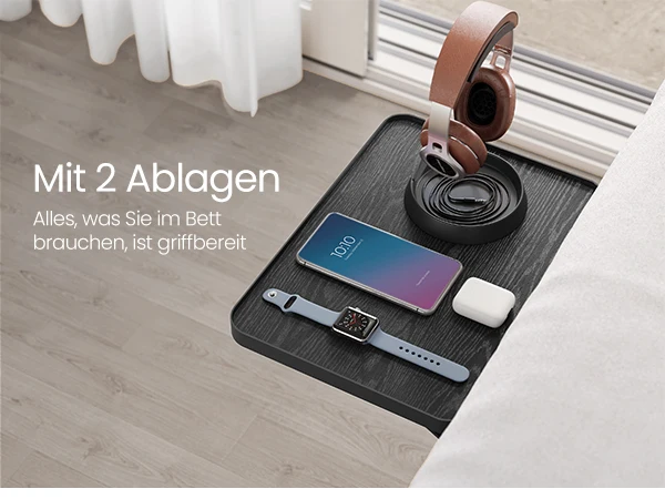 [2 bed mounted storage shelves]They replace bedside tables and provide ample space for various items, such as cell phones, alarm clocks, books, tablets and more. This allows you to take full advantage of the limited space