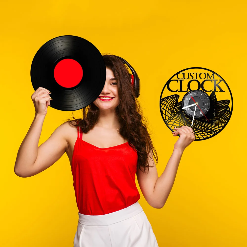 All clocks are made of 12 inch (30 cm) recycled vinyl records. Actual size after the cut out will vary depending on the shape.