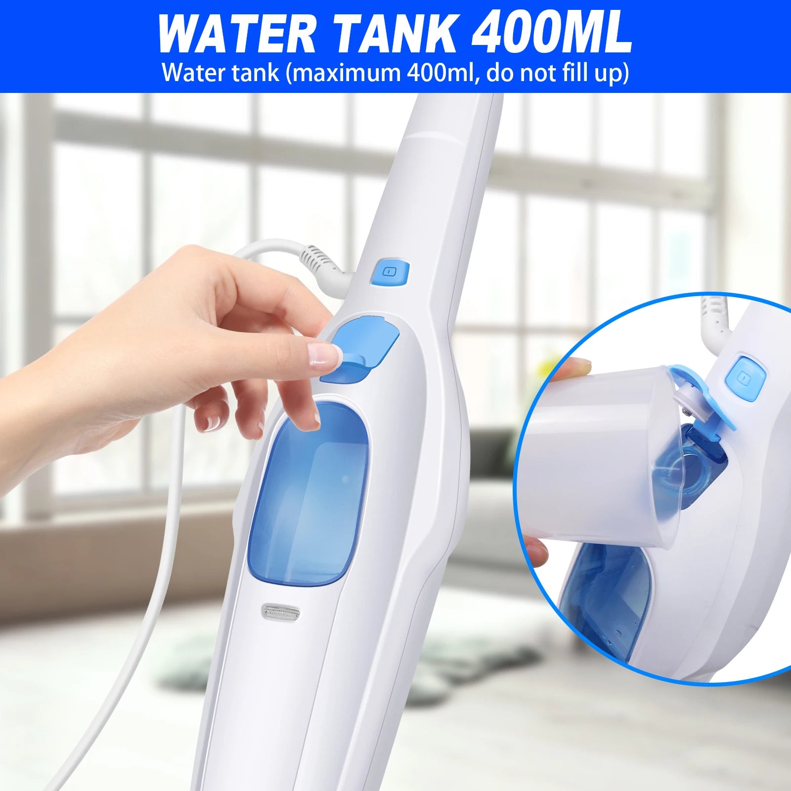 🌈CLEAN FOR LONGER - The 400ml ultra large water tank allows our steam mop to last up to 15 minutes for a single steam cycle. After using the water in the tank, simply add water to continue using it. Ultra long range, it is an ideal choice for large-scale cleaning.