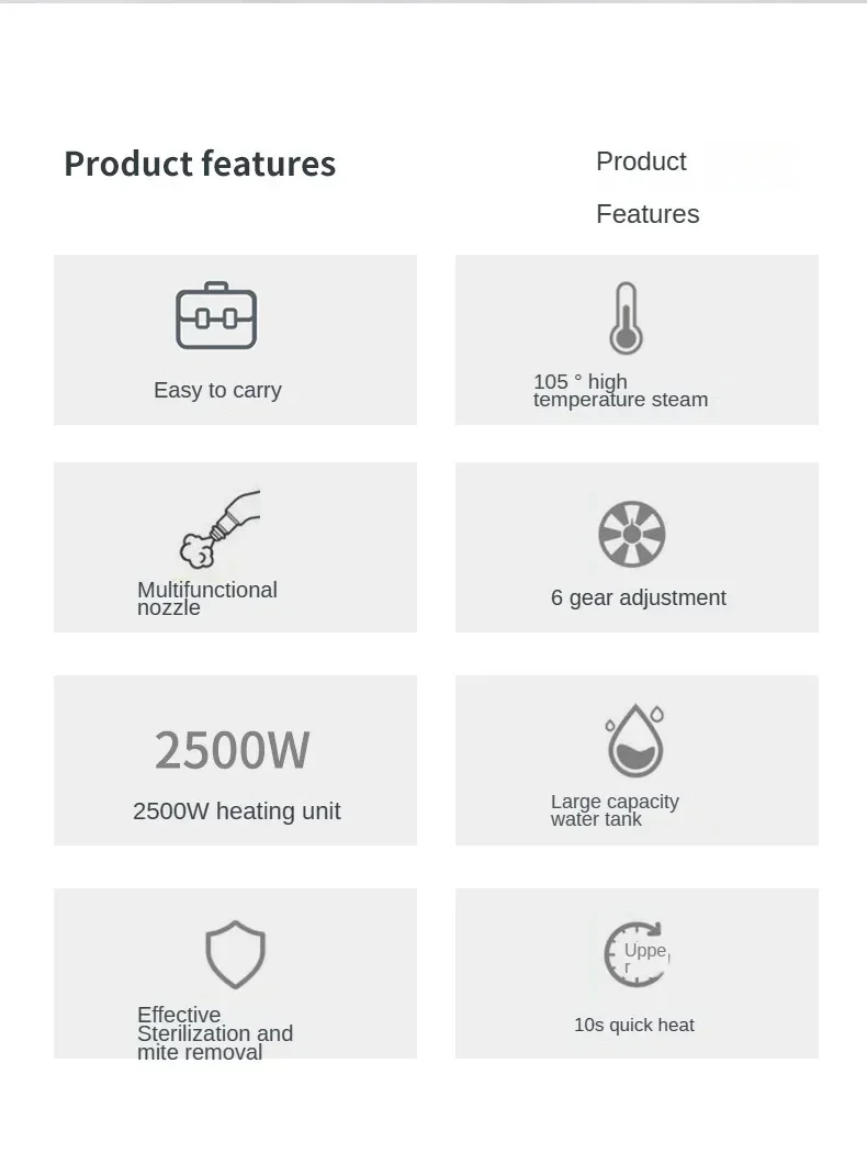 3.Lengthen the power cord and steam hose, single person operation is not laborious, can meet the cleaning needs.
