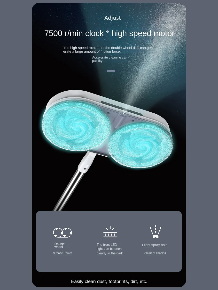 1. Rotating cleaning power, motor 7500 rpm, 180 rpm dual spinning drive system, instantly disintegrates stubborn oil stains/pet footprints/deep carpet stains