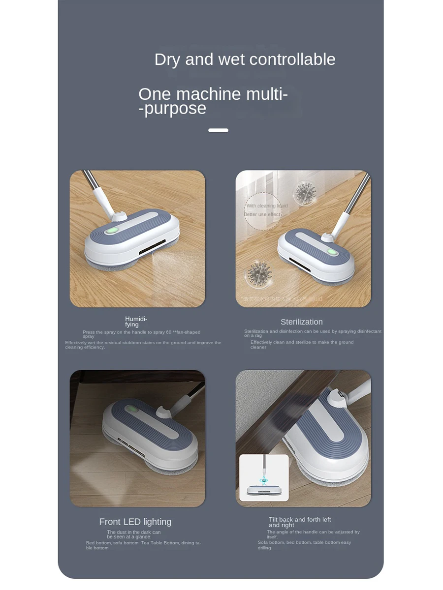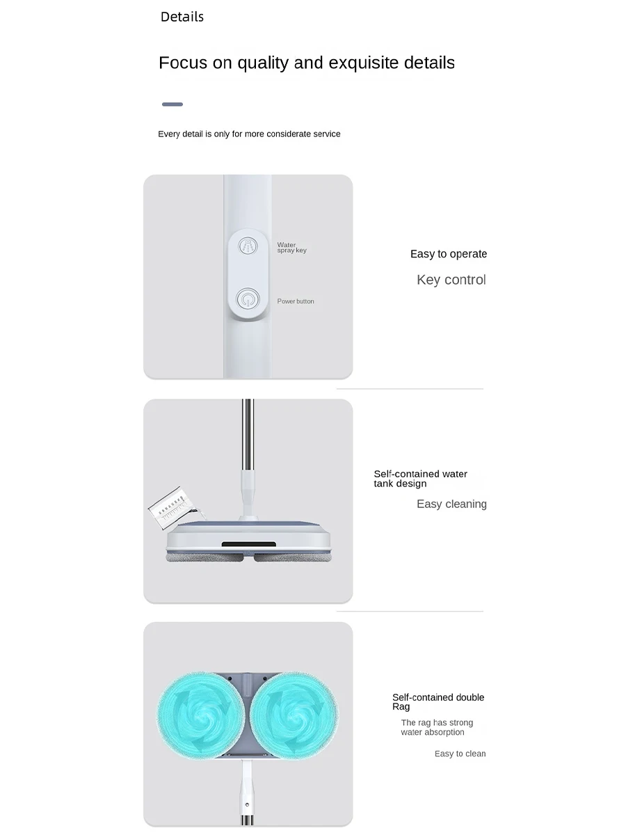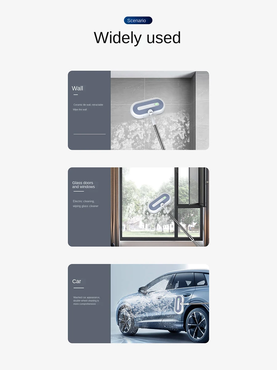5. One machine for multiple uses, with full coverage of ground glass, equipped with a detachable mop for both dry and wet wiping of the ground, fiber velvet wiping of the glass, and the ability to clean car windows, shower room glass, doors and windows, as well as household and car cleaning in one step