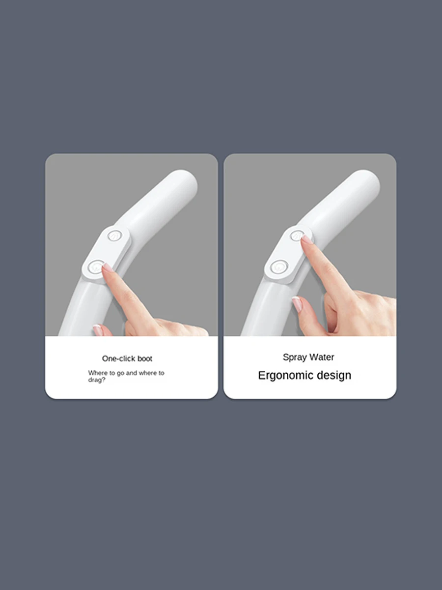 3. Smart pollution detection system and one click water spray design, chassis equipped with high-sensitivity LED searchlight group, one click to turn on LED light mode, one click to turn on water spray mode, avoiding the trouble of changing water back and forth. Mold spots in the gaps of wooden floors, gray accumulation in the beautiful joints of tiles, and hidden debris in carpets are displayed in real time