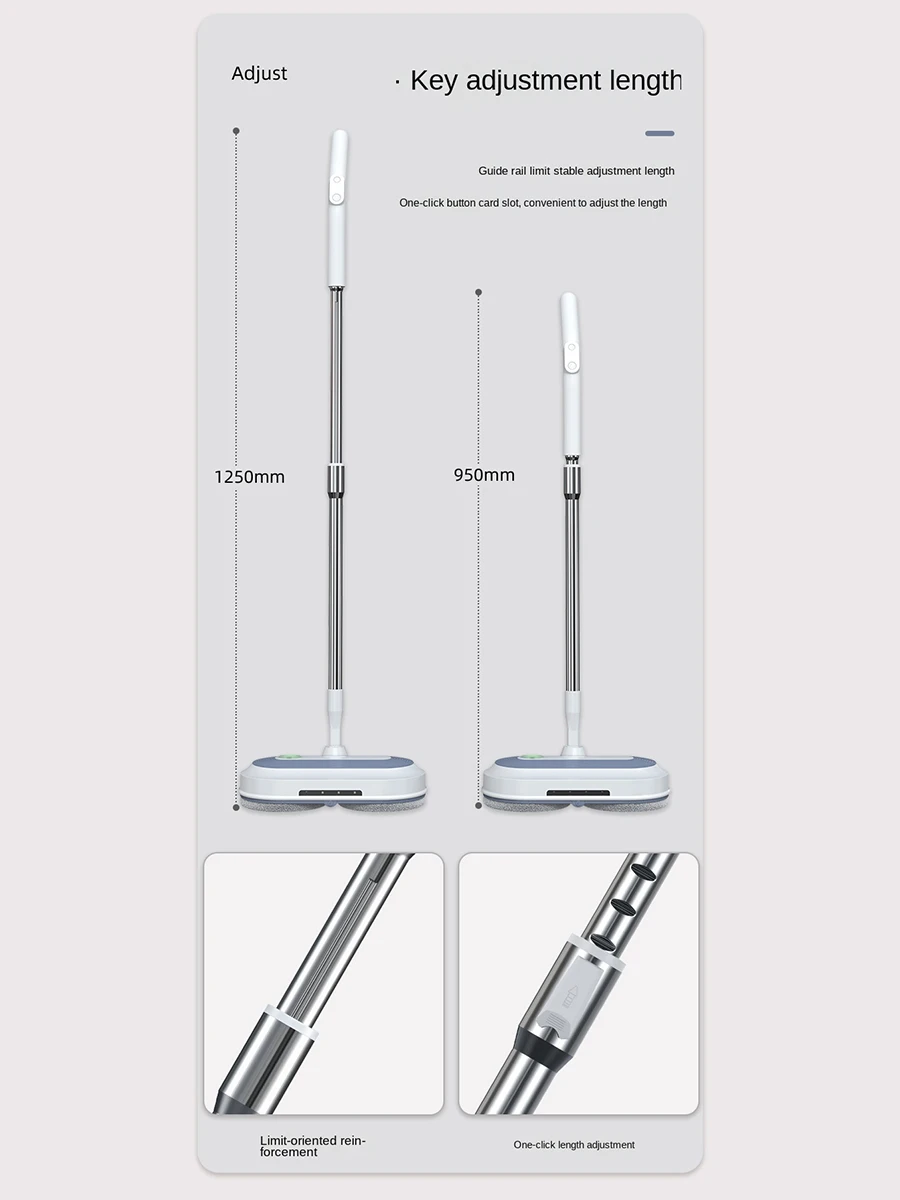 4. Adjustable joystick, one click switch between four scene modes: children's room mode/window cleaning mode/ceiling mode/regular mopping mode, vertical storage does not take up space