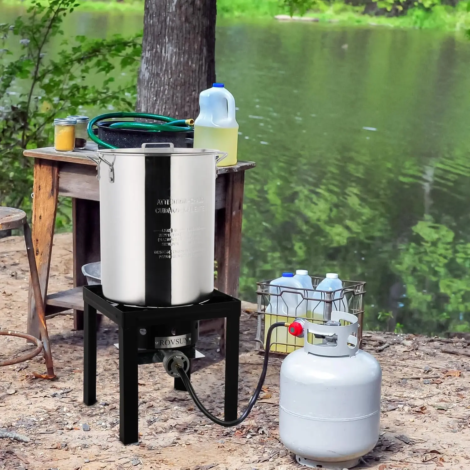 6. 【COMPLETE ACCESSORIES FOR COOKING】30QT Pot, 10QT Fish Fryer Kit, Perforated Baskets, 54,000 BTU Iron Frame Burner, 10 PSI CAS Certified Regulator with Hose, Adjustable Side Pot Holders, 3 Piece Metal Poultry Rack, Marinade Injector and 12" Deep Probe Thermometer. All these options make the outdoor cooking easier