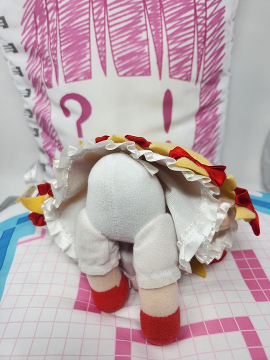 One of the earliest fumos ever released and has been on display for a while and is secondhand so please keep this in mind. She's been washed a few times so the copyright tag text is faded in the 2nd to last photo.